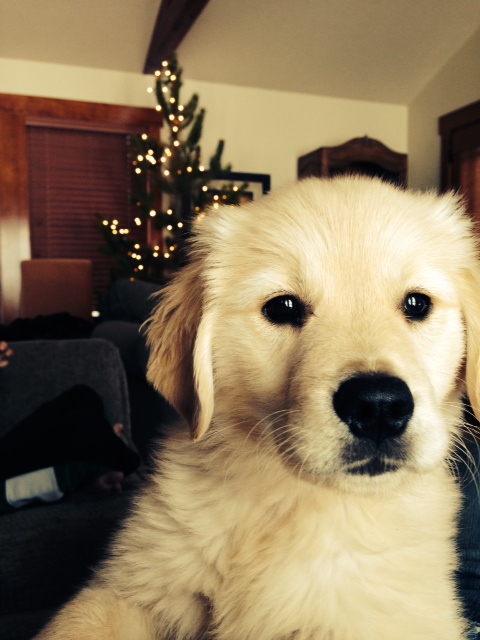 Hi Tim and Barbie (Alicia too)I thought you would enjoy seeing your wonderful boy, Jean-Luc (who just celebrated his second birthday). We cannot imagine life without him. Luc is awesome. OK, I know he is a Golden, but he is ALWAYS happy, and always perfectly behaved — so smart, loving, and so anxious to please. Luc’s little Corgi-brother ‘Blue’ (actually, the alpha dog of the house LOL) really doesn’t like having his picture taken … so first it was all “Hurray, I get to sit on the couch with dad and Luc” which then quickly turned into “Opps … No one said anything about photos. How fast can I get down from here!”