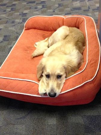 Cash also lays behind Brady’s chair during his 5 days of therapy. It keeps him calm and he really enjoys “showing” Cash what he can accomplish, like puzzles and memory games. Whenever Brady is having a frustrating or difficult time coping with something, Cash simply comes to be by him and has nuzzled his neck, which calms Brady right away. Even our 2 year old loves him to death!