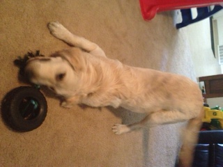 Hello Tim! This is Tracy! I am trying to get some more photos for you! Gabe has been used so much for therapeutic work that he automatically sits when I am working with him! Thank you for all you do! We are so appreciative of your philosophy, integrity, love and dedication to the Golden Retriever Breed!!