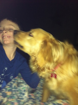 I hope you remember us. It’s Katherine Rogers, and we got our precious girl Rosebud from you last year March 2010. I am sorry it has taken me Soo long to write and send some pictures and give you all an update. As you may remember I got Roaebud for my son Slade, who is severely developmentally delayed. These two are the best of friends. I did continue with a professional trainer to be specific to Slade’s needs and our routine. Rosebud is even a certified Therapy dog! But there have been other surprises as well….Slade started having pretty bad and frequent seizures about 6 months ago. And when Slade starts to have one Rosebud lays across him. It was quite a wonder to be seen. They say dogs have a sense. I was able to get Slade out of my bed at night (something he didn’t like and made me nervous). What if I didn’t hear him or something was wrong?