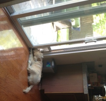 Otis is a great dog and he makes so many people smile every day. Here is a picture of him outside my mom’s apartment.
