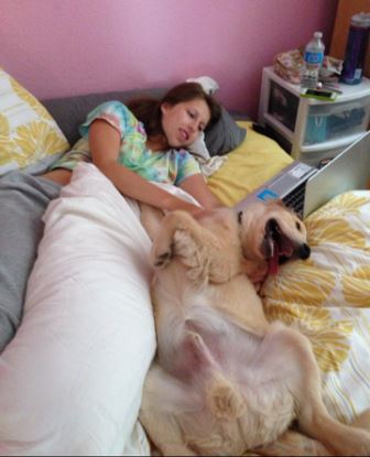 Samantha is happy and healthy and enjoying life in Cincinnati!!She swims, actually jumps in the pool after the kids! (like a lifeguard) Jordyn, our 11 year old is Samantha’s favorite! Sam attends puppy school on Saturdays, and has advanced to level 2.