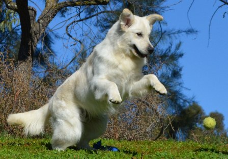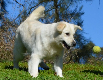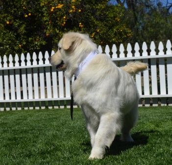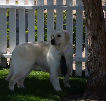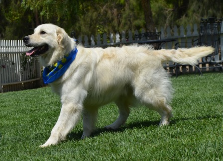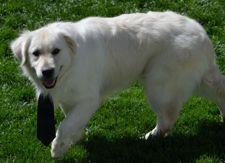 Solo is big beautiful bear. His gorgeous coat and loving personality has endeared Solo to us. Solo is a wonderful dog and would make the finest addition to any home. If you were hoping for a big goofball then look no further. Solo is the lovable, playful goof. He is doing great on his commands and we look forward to expanding his understanding of right and wrong. A perfect fit to any home. Solo is a great beach boy or perfect start for a new family. Solo is Fixed, Making bringing this boy home one step easier. Solo is what is now referred to as a White Golden Retriever. Solo has earned his Canine Good Citizenship with AKC, and passed his Hips and Elbows. Retiring from our program Solo is ready to head home at a significantly reduced price. He is a well mannered, obedience trained, potty trained, walks well on leash, goes to town, enjoys the beach and gets along with other dogs.